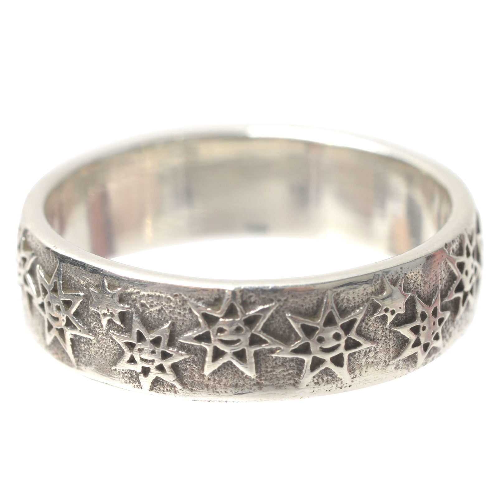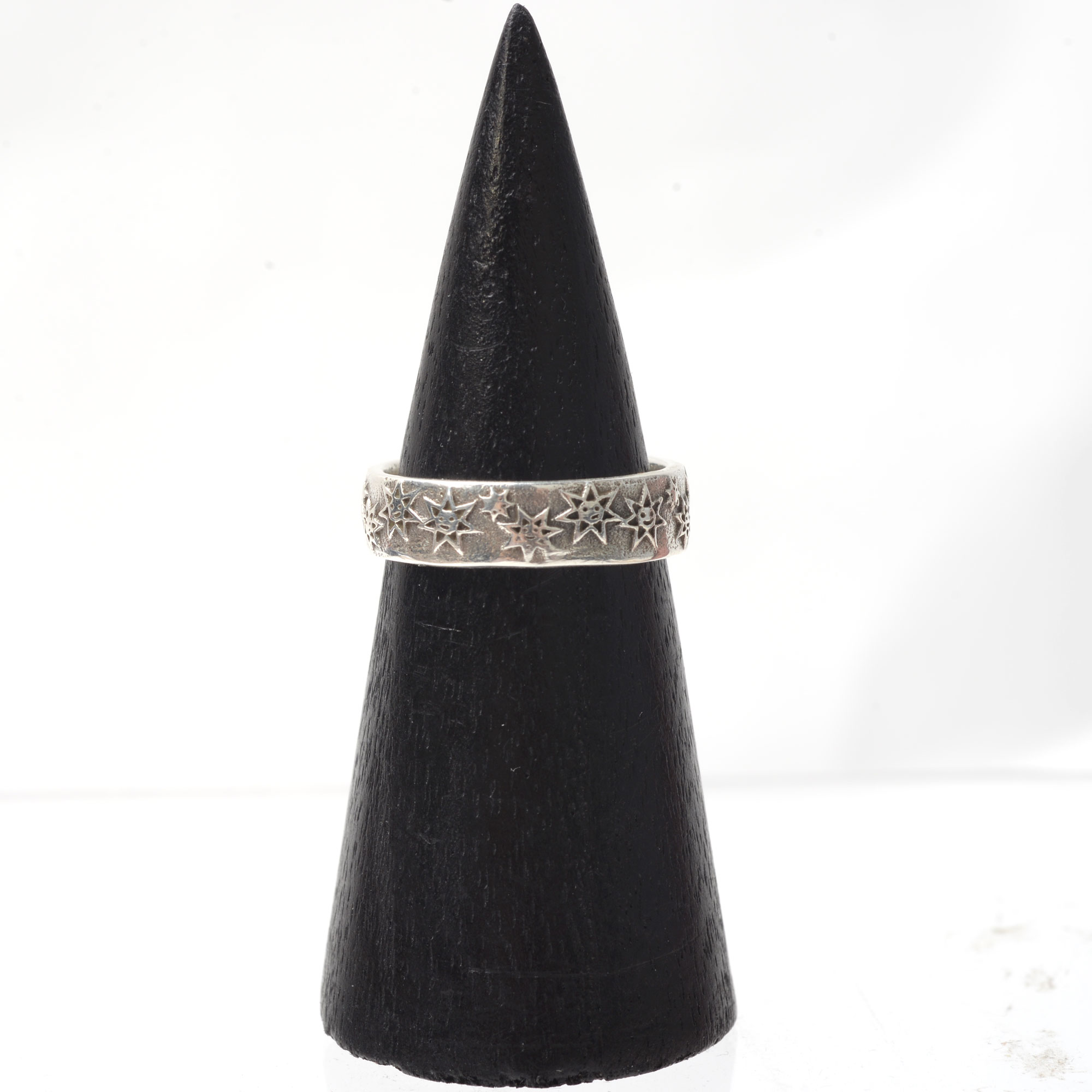 STERLING SILVER CLOSED BAND WITH STARS RING - SIZE 6