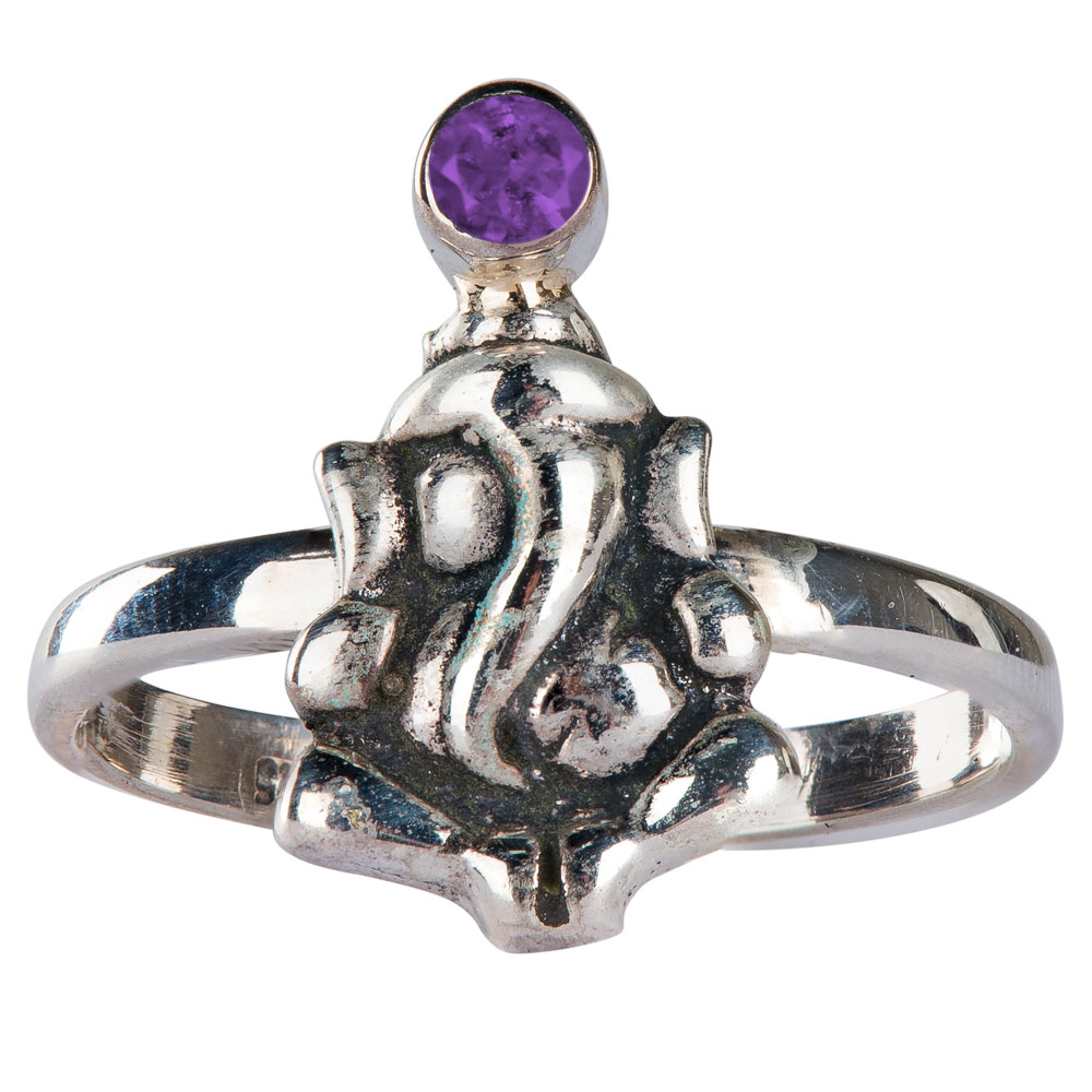 STERLING SILVER AND AMETHYST BUDDHA RING