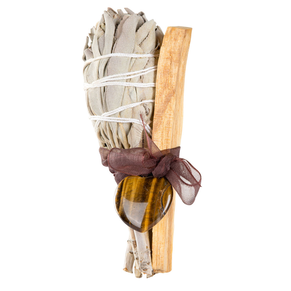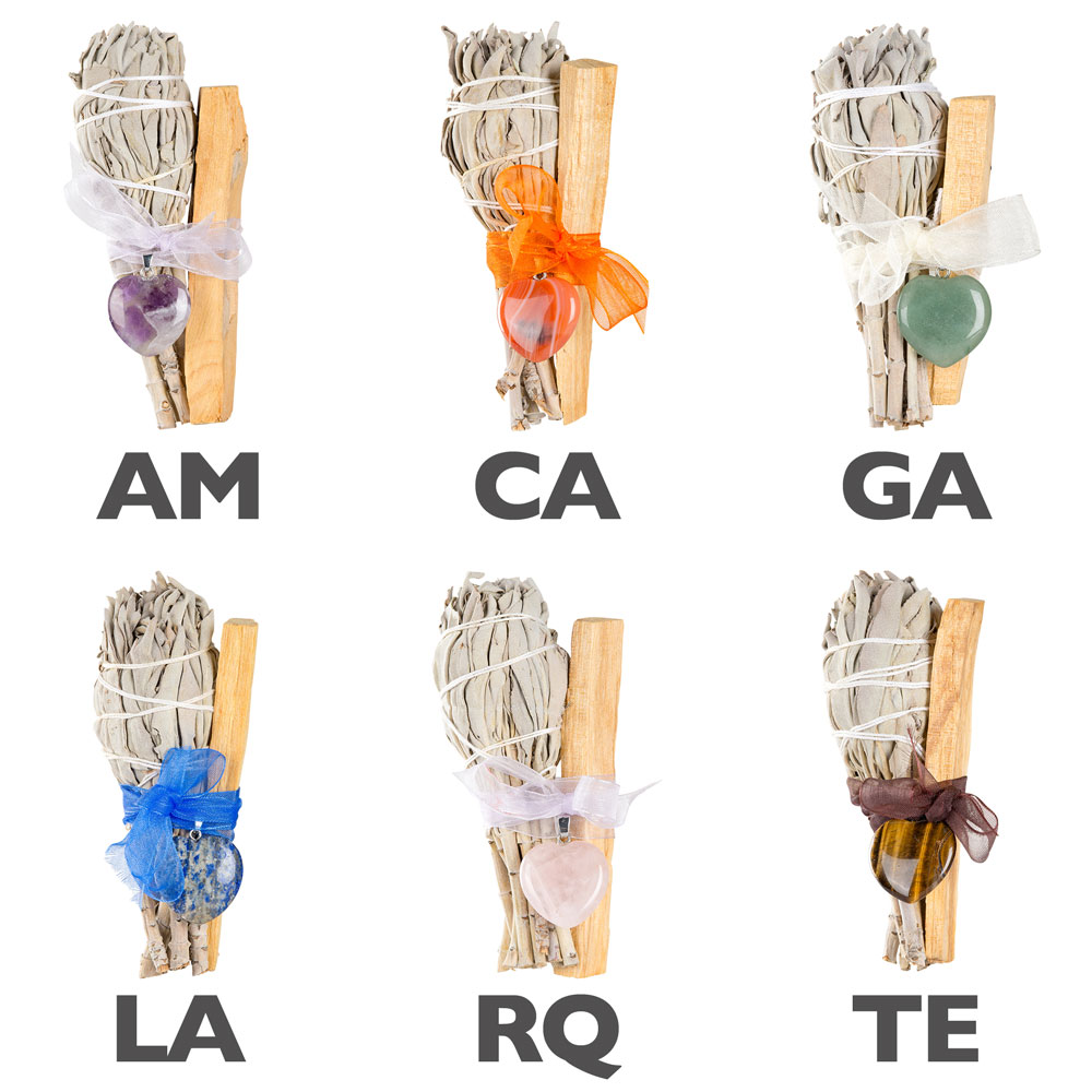 Includes sage, palo santo, and a gemstone heart pendant
