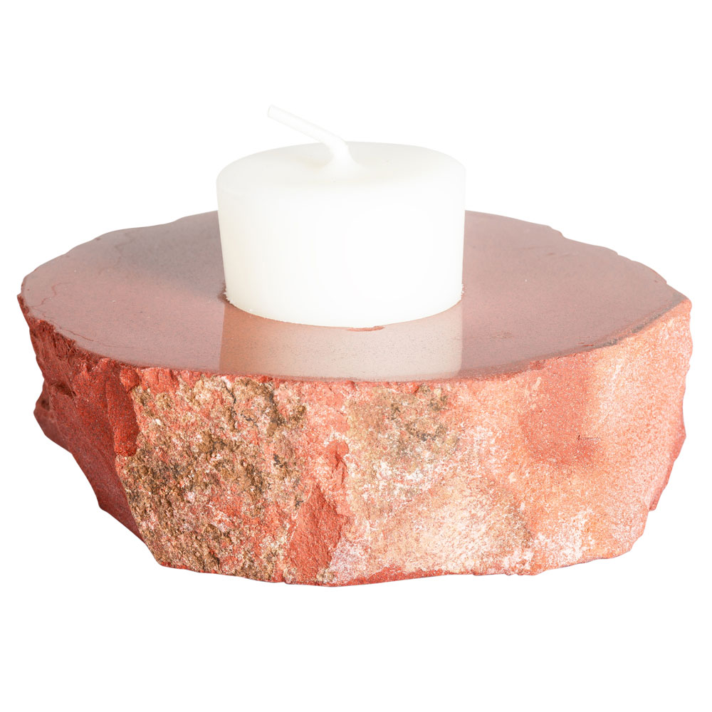 ROUGH RED JASPER CANDLE HOLDER WITH SMOOTH TOP