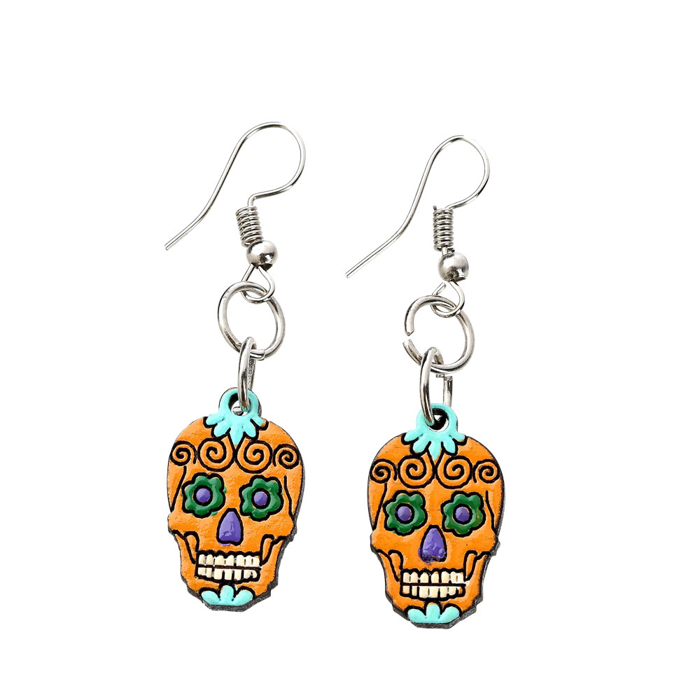 WOODEN SUGAR SKULL EARRINGS