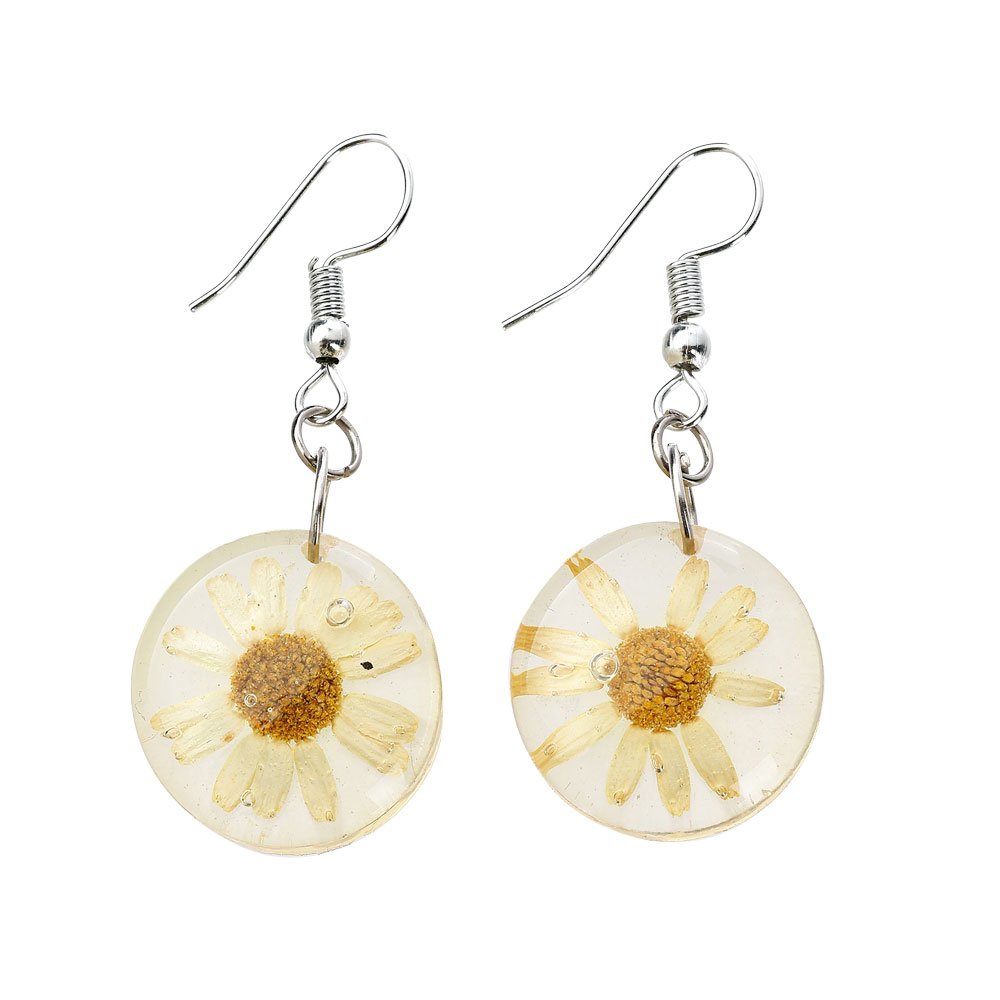 ROUND DRIED DAISY RESIN FLOWER EARRINGS