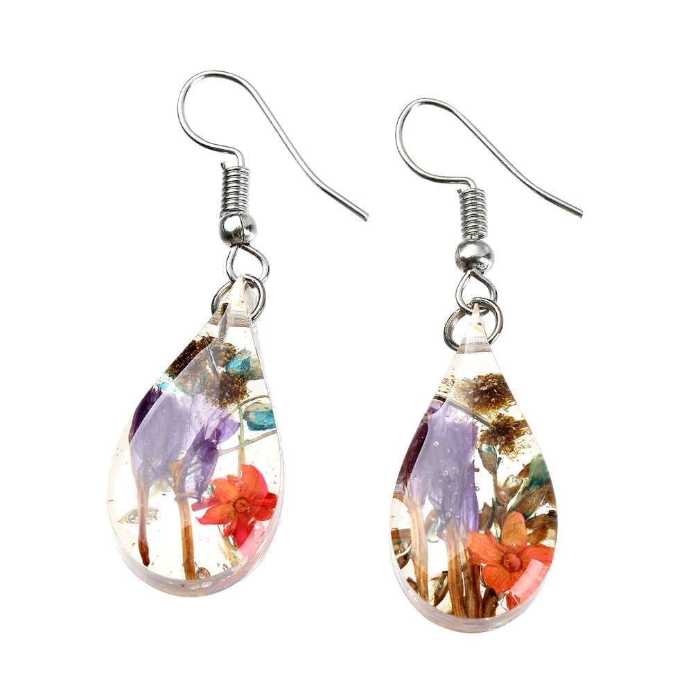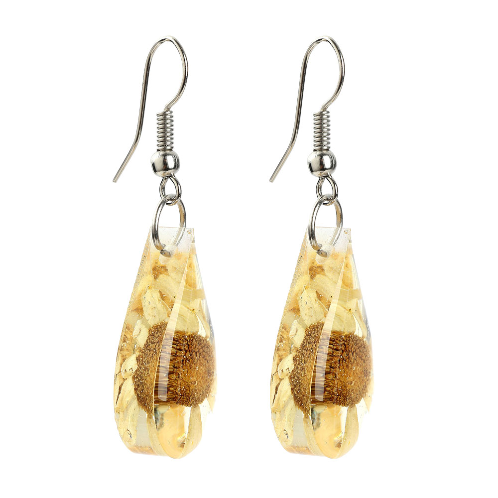TEARDROP DRIED DAISY RESIN FLOWER EARRINGS