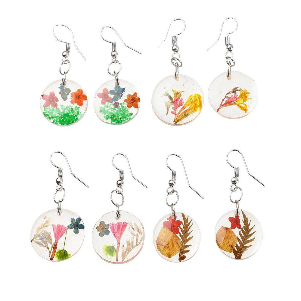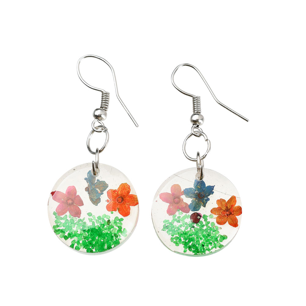 ROUND DRIED FLOWERS RESIN EARRINGS