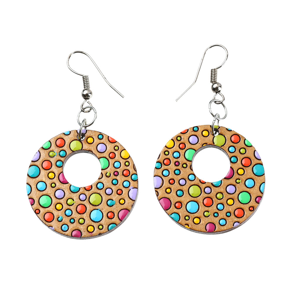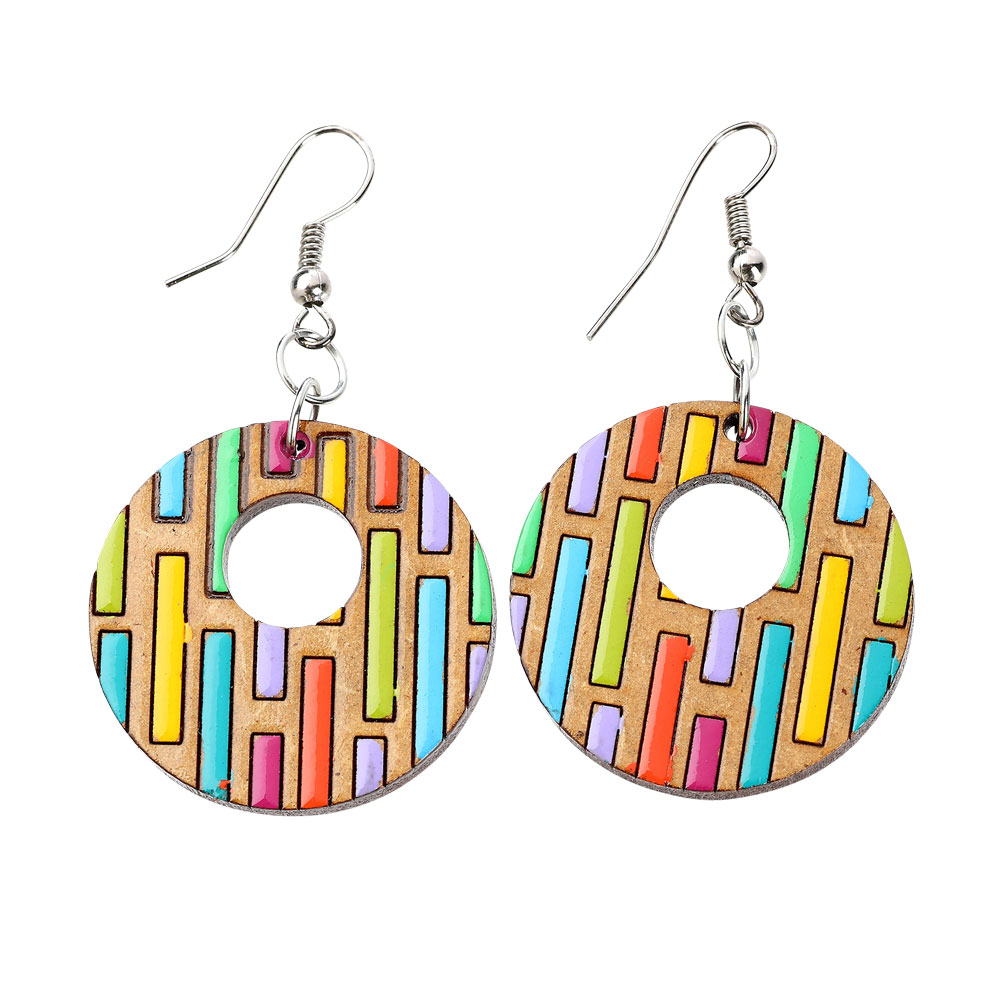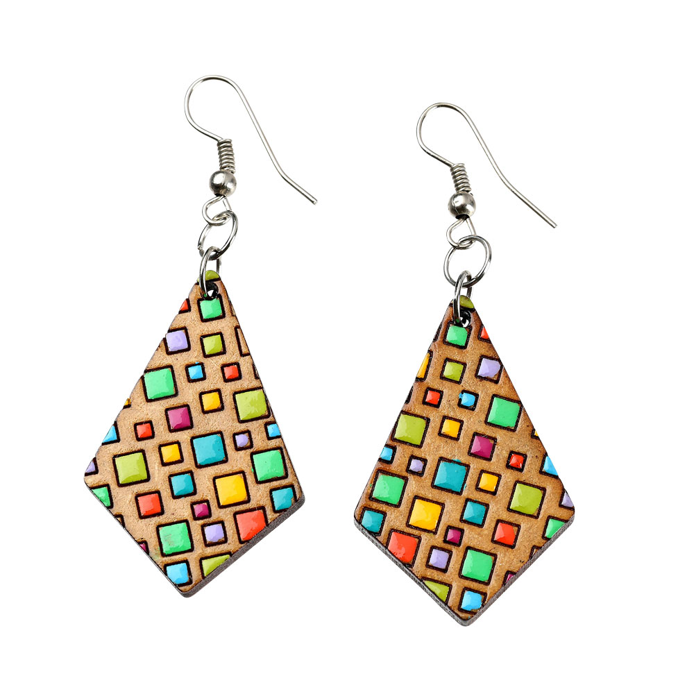 WOODEN MOSAIC SHAPES EARRING