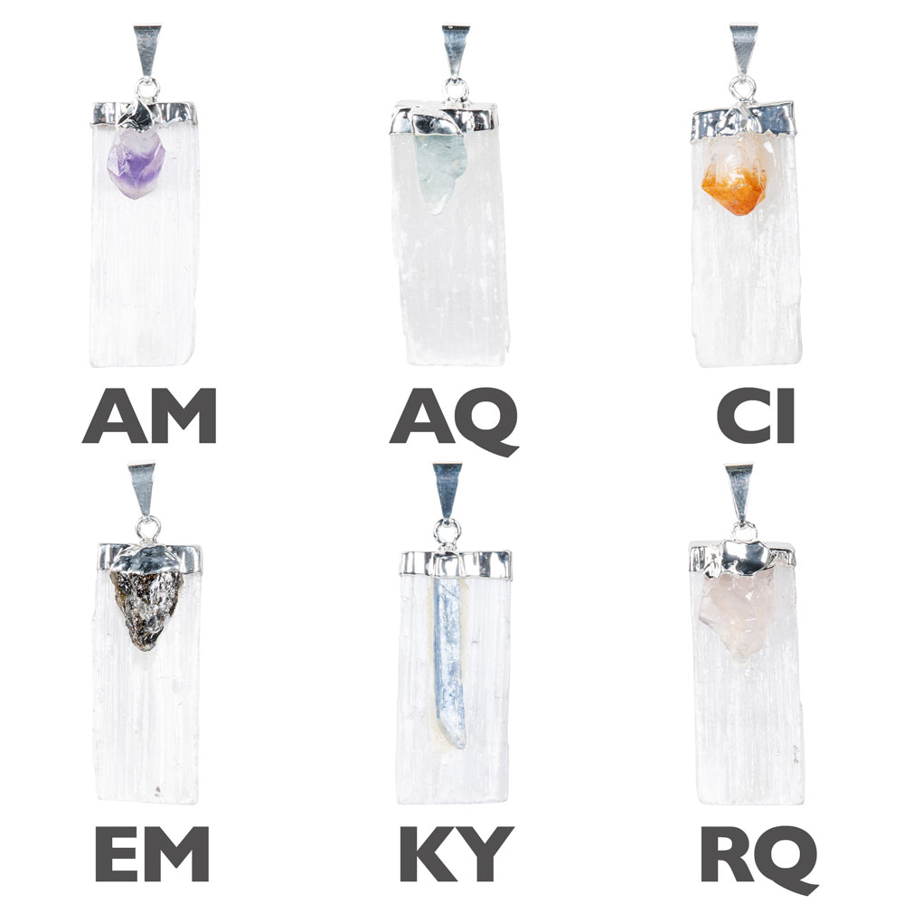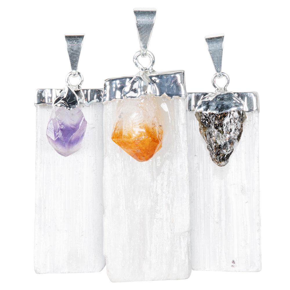 SELENITE AND GEMSTONE PENDANTS