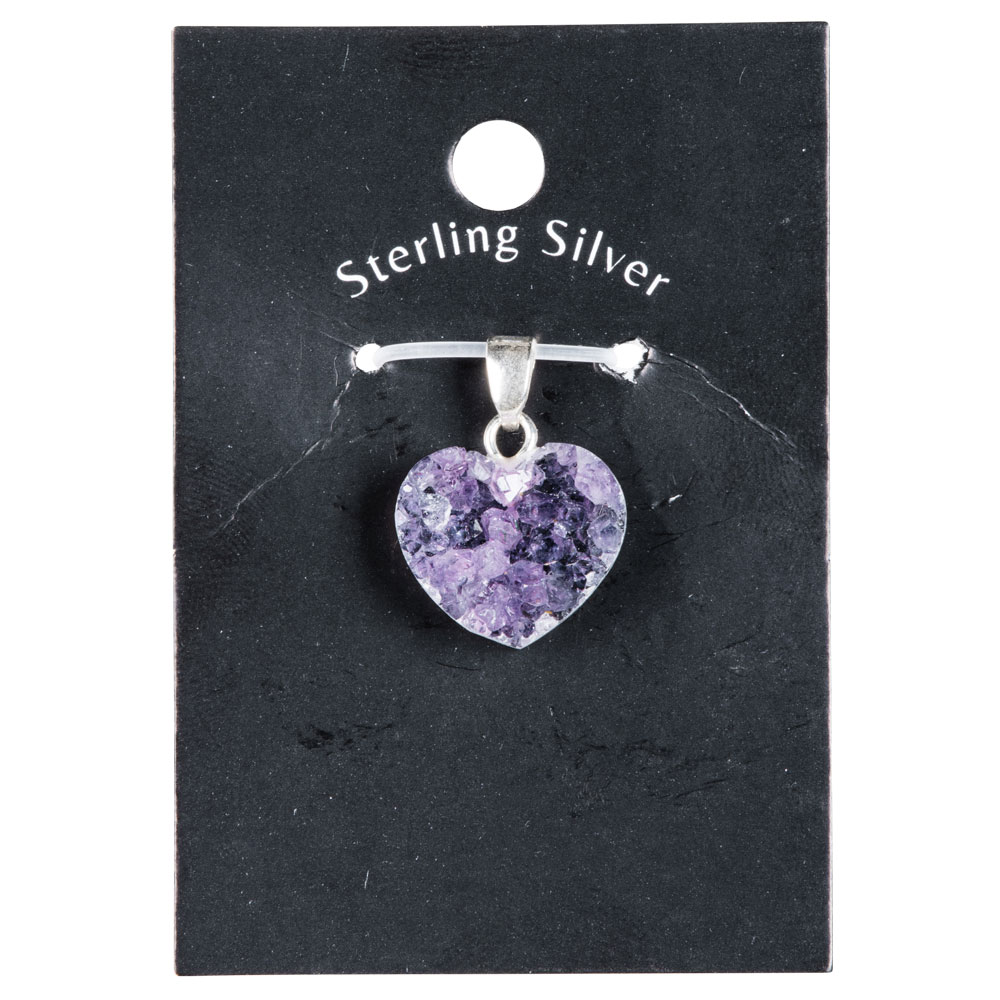 SMALL AMETHYST DRUZY HEART PENDANT WITH STERLING SILVER