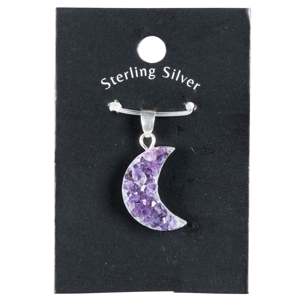 SMALL AMETHYST DRUZY MOON PENDANT WITH STERLING SILVER