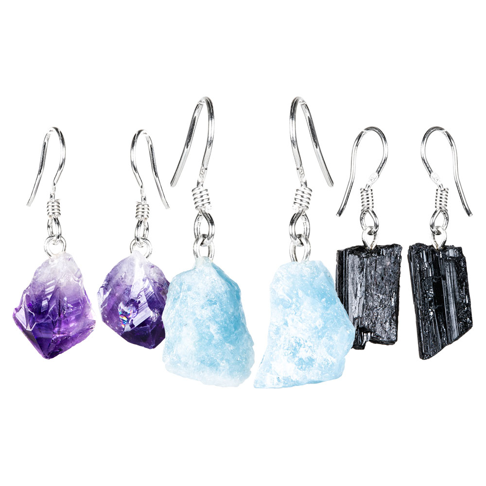 STERLING SILVER AND SMALL ROUGH STONE EARRINGS
