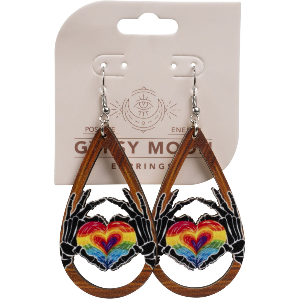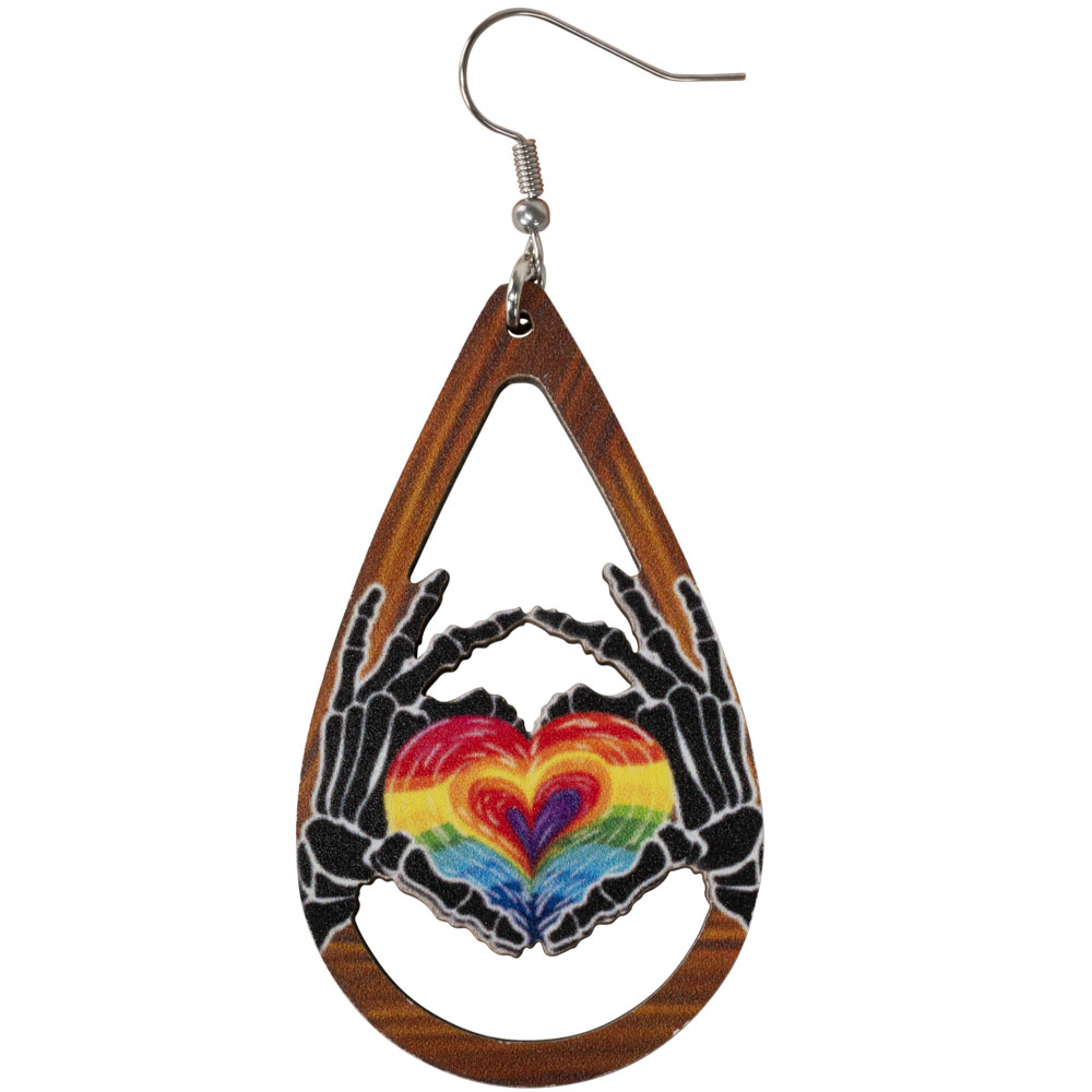 WOOD SKELETON HANDS/HEART EARRING