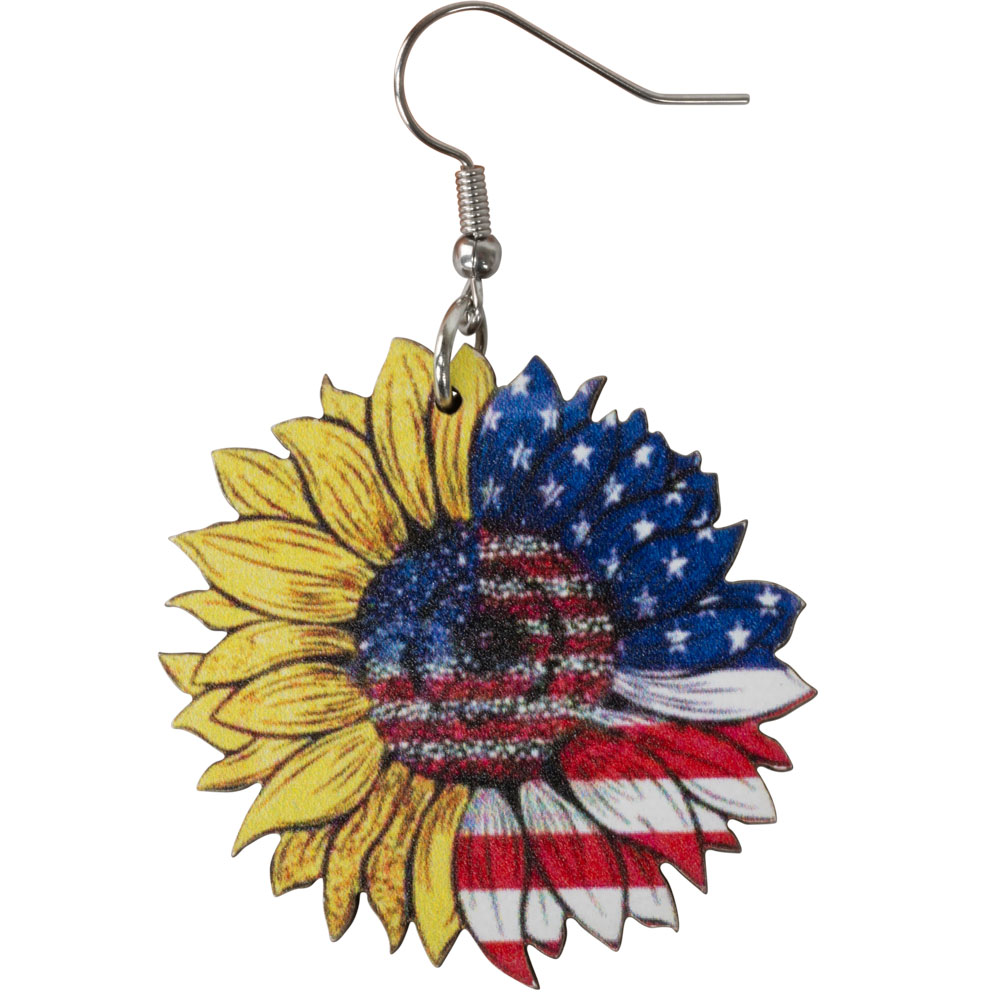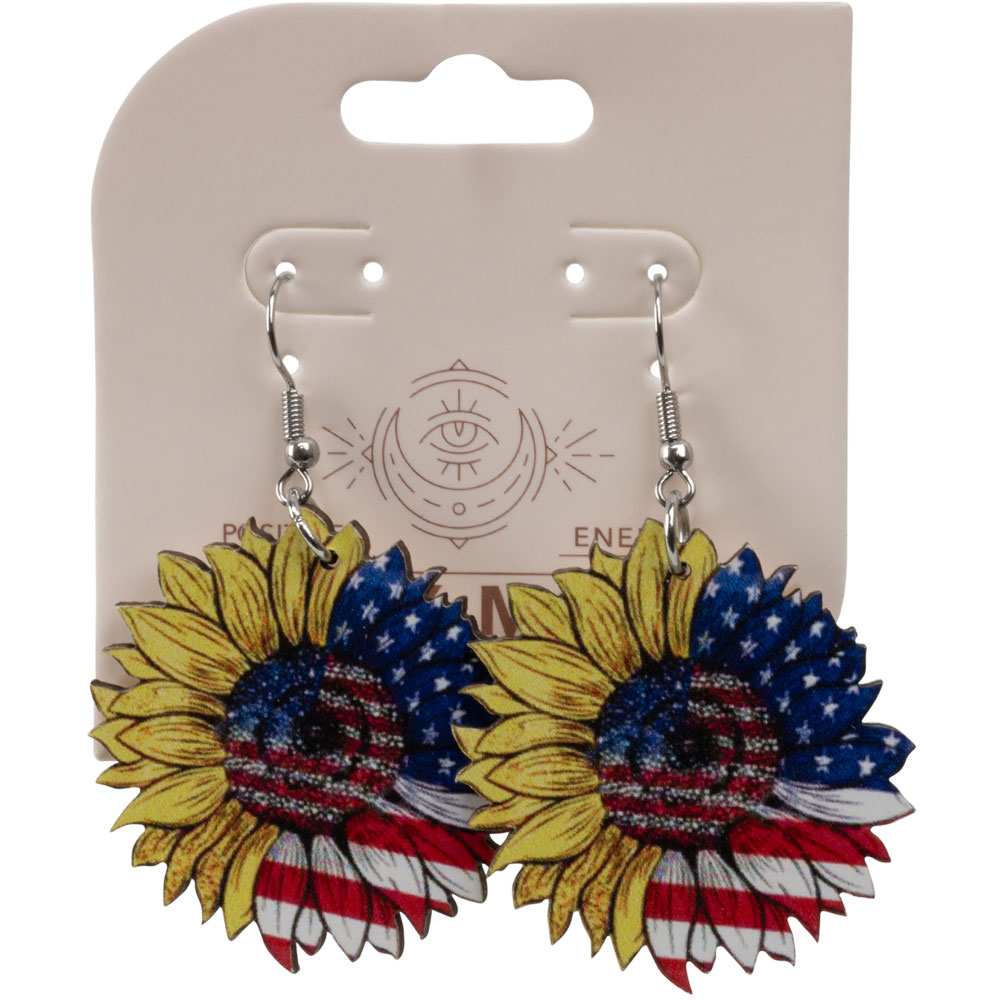 WOOD SUNFLOWER AMERICANA EARRINGS