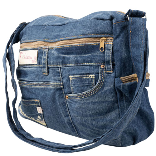 THESE UNIQUE JEAN BAGS ARE MADE FROM RECYCLED JEANS. THE COLORS OF EACH BAG WILL VARY --11X10X4.5