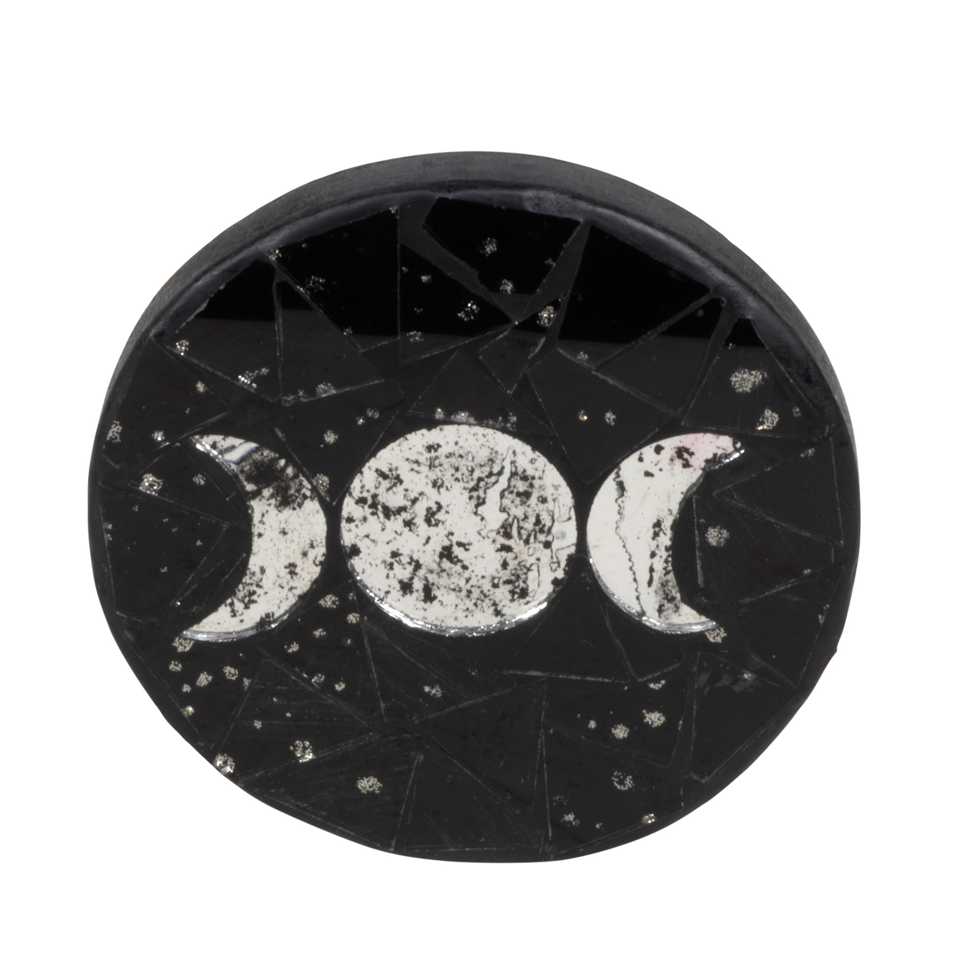 TRIPLE MOON COASTER WITH A BLACK BACKGROUND - THE AVERAGE SIZE 3.5" DIAMETER