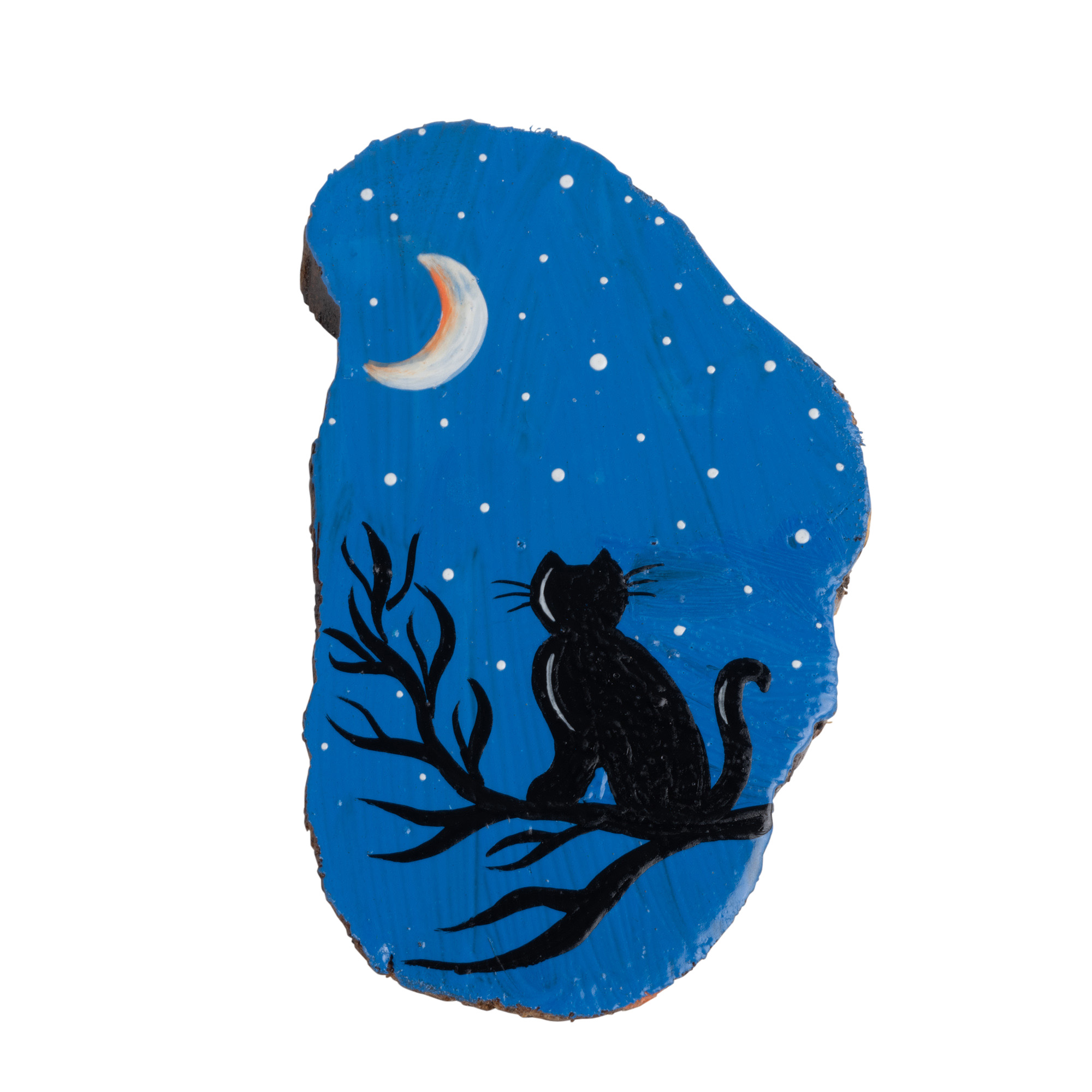 BLACK CAT ON BRANCH WOOD MAGN