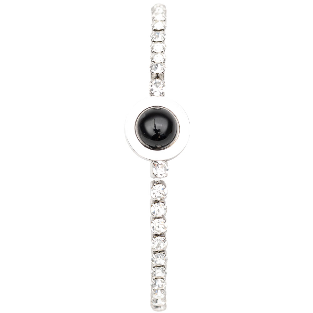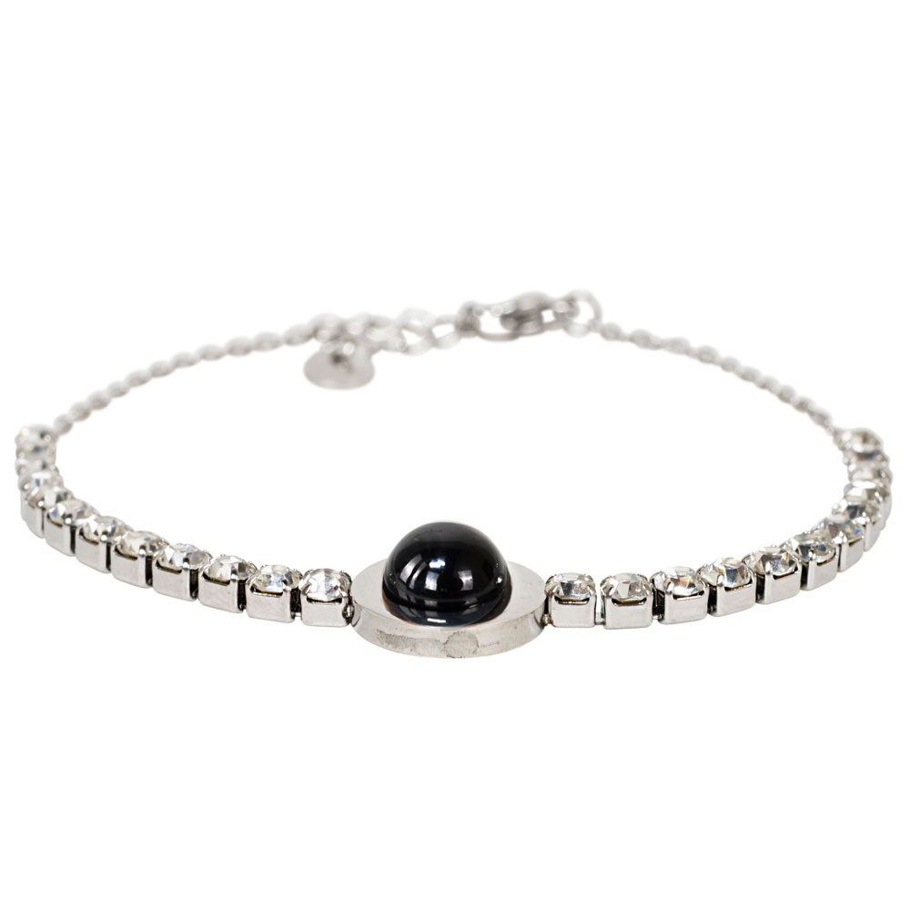 RHINESTONE AND BLACK OBSIDIAN BRACELET