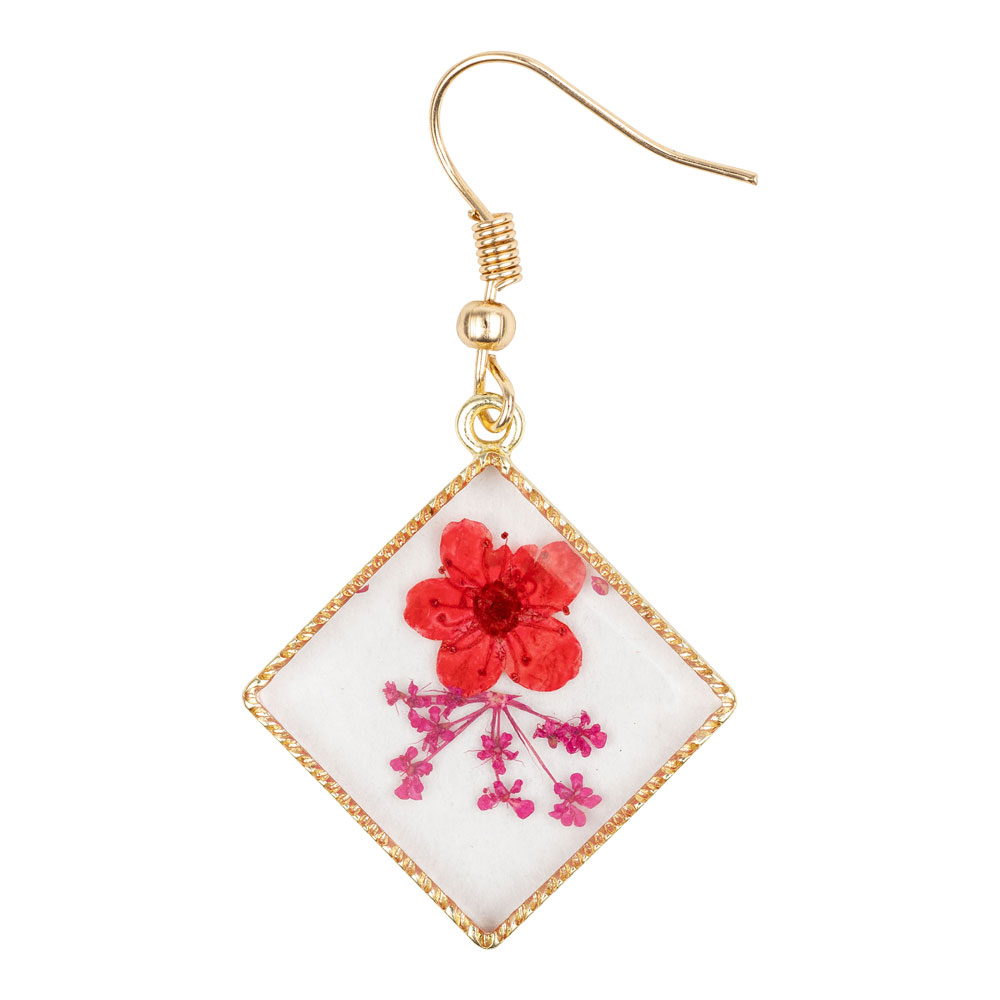 TRIANGLE SHAPE DRIED PINK FLOWER EARRINGS