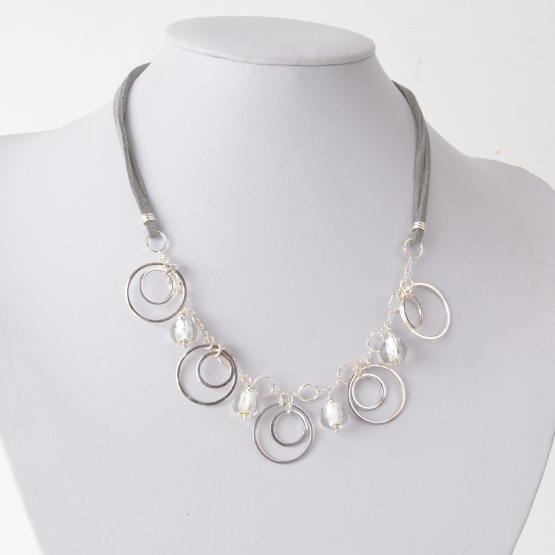 SILVER CIRCLE&MURANO NECKLACE IN CLEAR