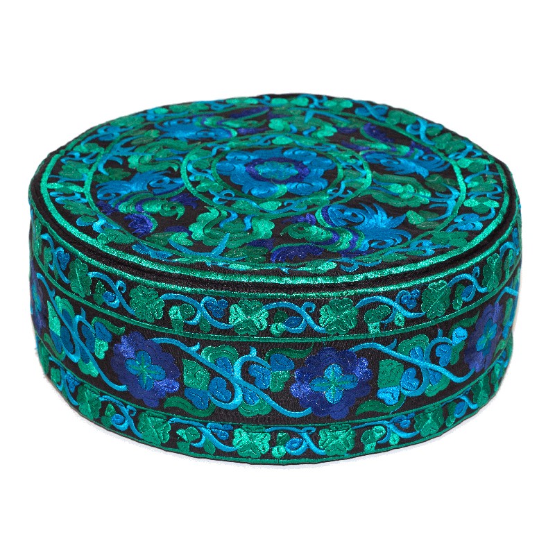 LARGE EMBROIDERED MEDITATION PILLOW - BLUE/GREEN