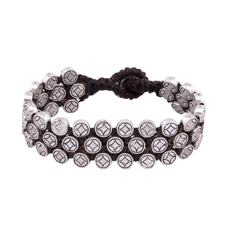 3 ROW FLAT SILVER BRACELET With BUTTON CLOSURE