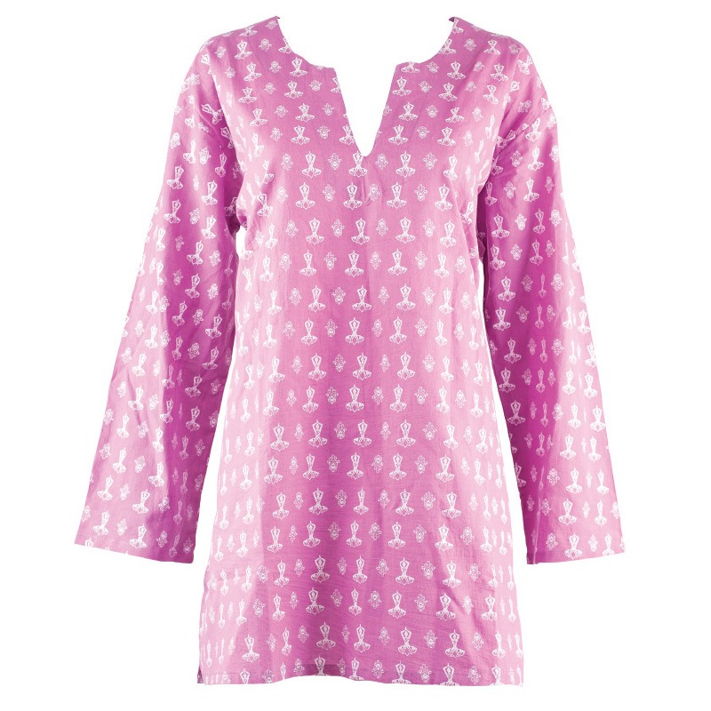 PURPLE AND WHITE SEATED YOGA COTTON TUNIC