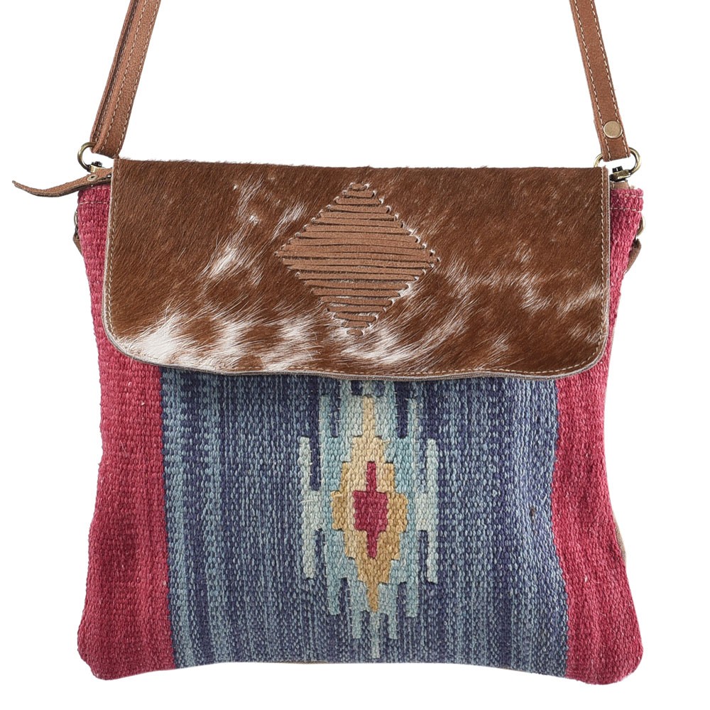 RED AND BLUE CROSSBODY AND LEATHER CLOSURE