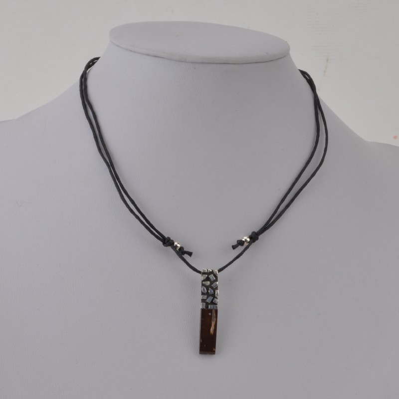 SMALL COCONUT AND SILVER PENDANT NECKLACE