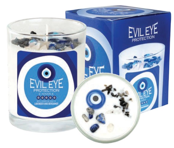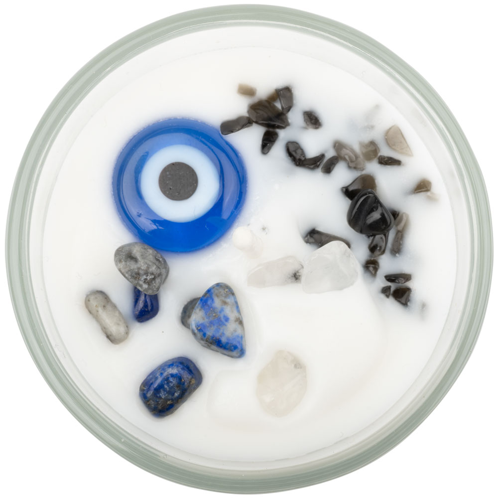 LAPIS, BLACK OBSIDIAN & CLEAR QUARTZ WITH ESSENTIAL OILS OF LAVENDER & BERGAMOT AND REMOVABLE EVIL EYE AMULET