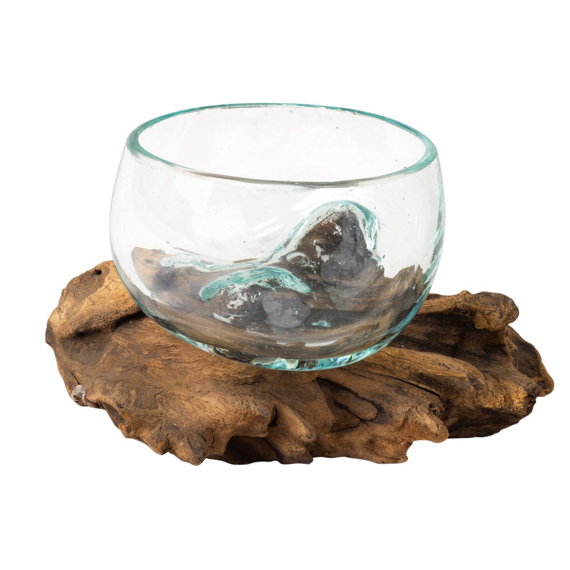 SMALL MOLTEN GLASS BOWL ON DRIFTWOOD
