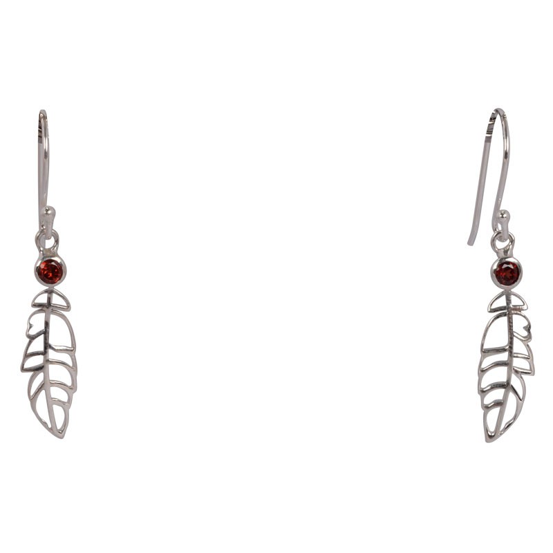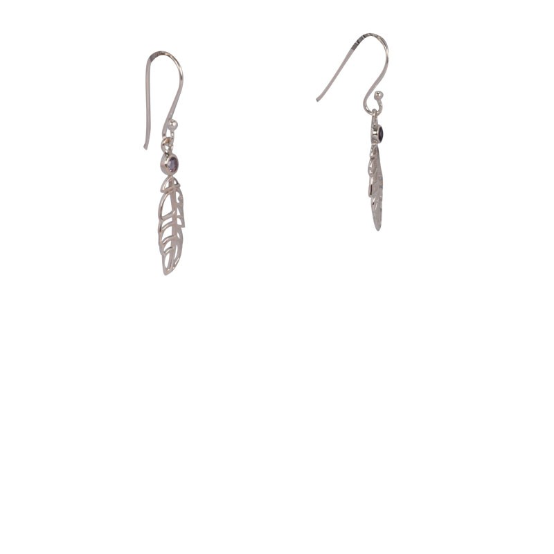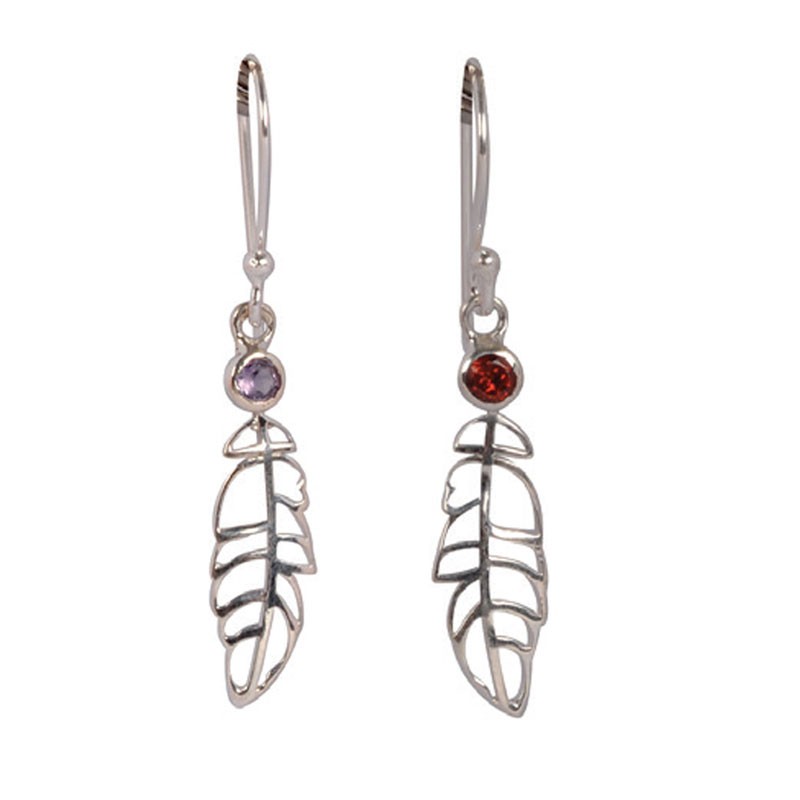 STERLING SILVER FEATHER WITH STONE EARRINGS