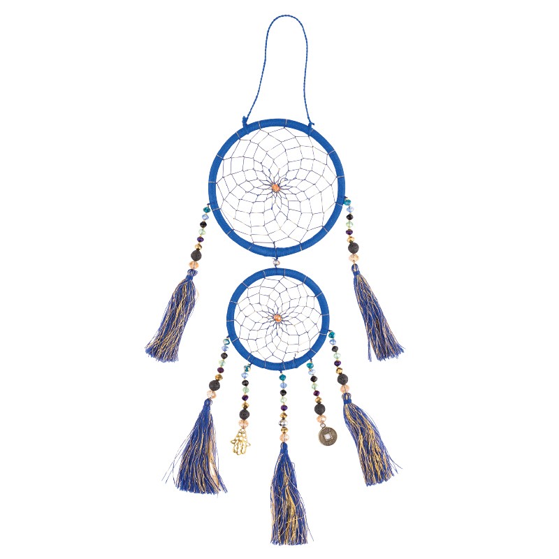TWO TIER SEVEN STRAND BLUE BEADED DREAMCATCHER