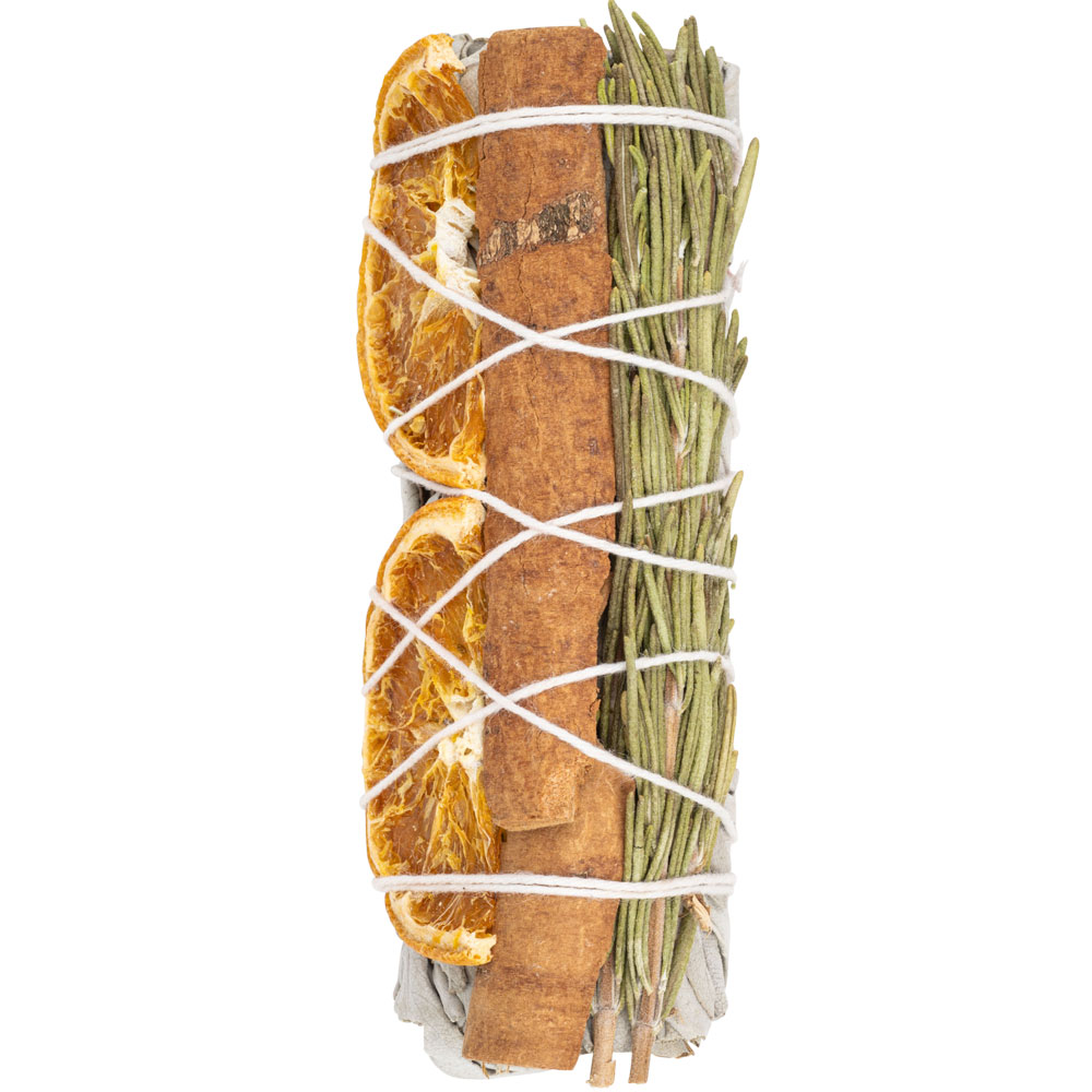 4" WHITE SAGE WITH CEDARWOOD, CINNAMON & ORANGE SMUDGE STICK