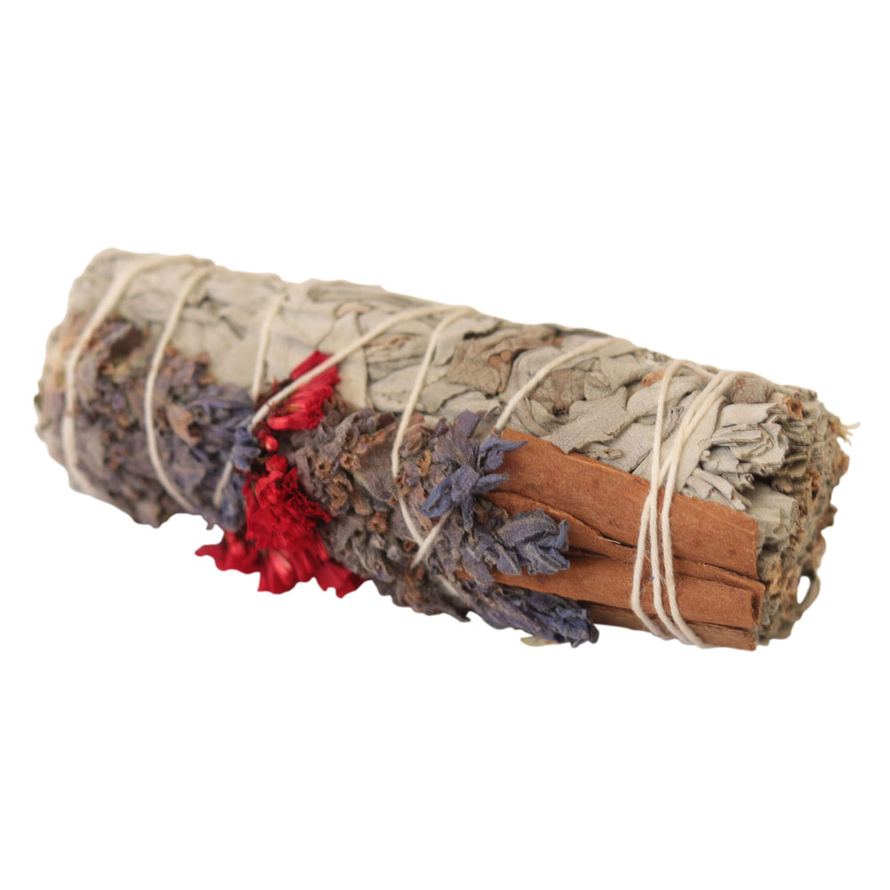 4" WHITE SAGE WITH CINNAMON, LAVENDER & FLOWERS SMUDGE STICK
