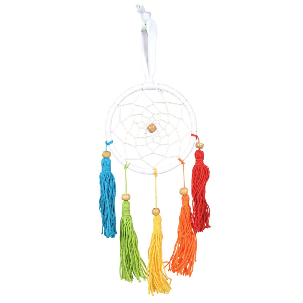 WHITE SUEDE DREAMCATCHER WITH RAINBOW TASSEL